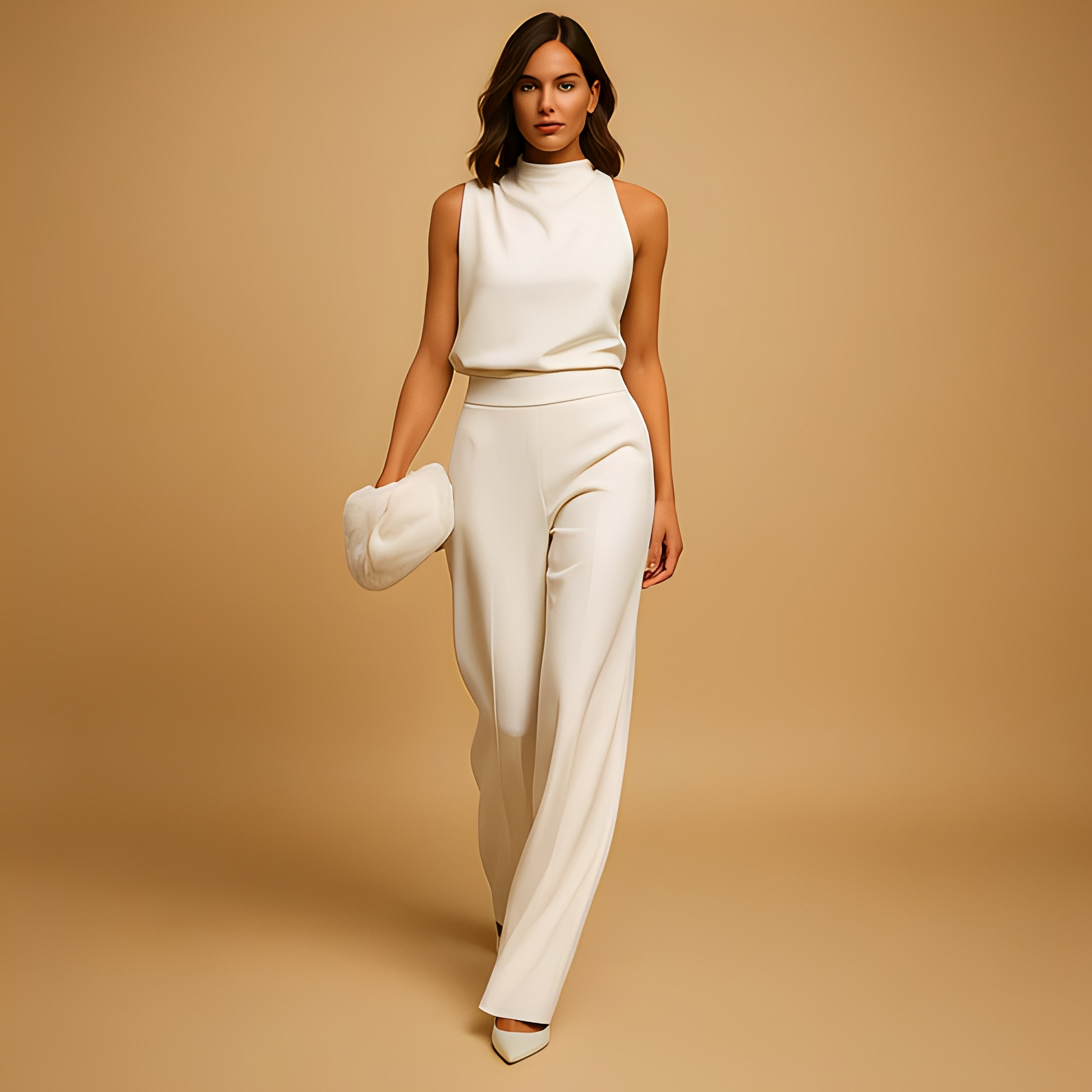 Tento elegantní bezrukávový overal Almerra je navržen tak, aby bez námahy spojoval styl a pohodlí. Se svými širokými nohavicemi a lichotivým střihem vytváří sofistikovanou siluetu, která vyhovuje všem tvarům těla. Vyroben z měkké a vysoce kvalitní tkaniny, nabízí pohodlné přizpůsobení, které sleduje vaše pohyby. Perfektní pro formální události i neformální výlety, snadno se kombinuje s podpatky nebo plochými botami. Obohaťte svůj šatník tímto všestranným a nadčasovým overalem.