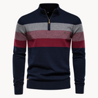 Svetr s krátkým zipem Aurullo má elegantní pruhovaný design a je vyroben z kvalitní bavlněné směsi. Tento velmi jemný svetr příjemně přiléhá k pokožce a poskytuje výjimečné teplo. Elegantní zip a přiléhavý střih dělají z tohoto svetru univerzální kousek, ideální pro jakoukoli příležitost.