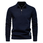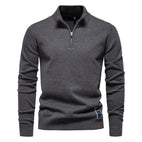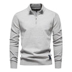 Tento svetr spojuje jemnou pleteninu s moderním úzkým střihem pro elegantní vzhled. Zejména čtvrtinový zip u krku usnadňuje oblékání a svlékání a umožňuje regulaci větrání. Skvěle se hodí k nošení s košilemi nebo tričky, hladký materiál je příjemný na nošení a jednoduše se udržuje. Perfektní do kanceláře, pro volný čas, nebo jako stylová vrstva ve chladnějších dnech.