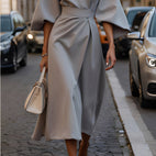 Élise - Elegantní šaty s lucernovými rukávy a páskem pro ženy