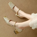 Tyto hedvábné sandály upoutají pozornost svým elegantním designem s ražením a pohodlným podpatkem, který zajišťuje stabilitu. Kvalitní materiál nabízí luxusní pocit během nošení, zatímco jejich elegantní tvar dokonale doplní jakýkoli outfit. Skvělé pro speciální události, večerní akce nebo módní letní outfity. Nezbytnost pro ženy, které chtějí spojit eleganci s pohodlím.