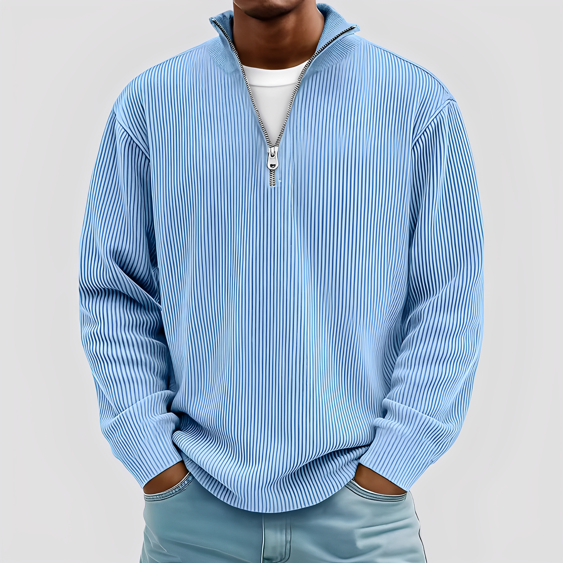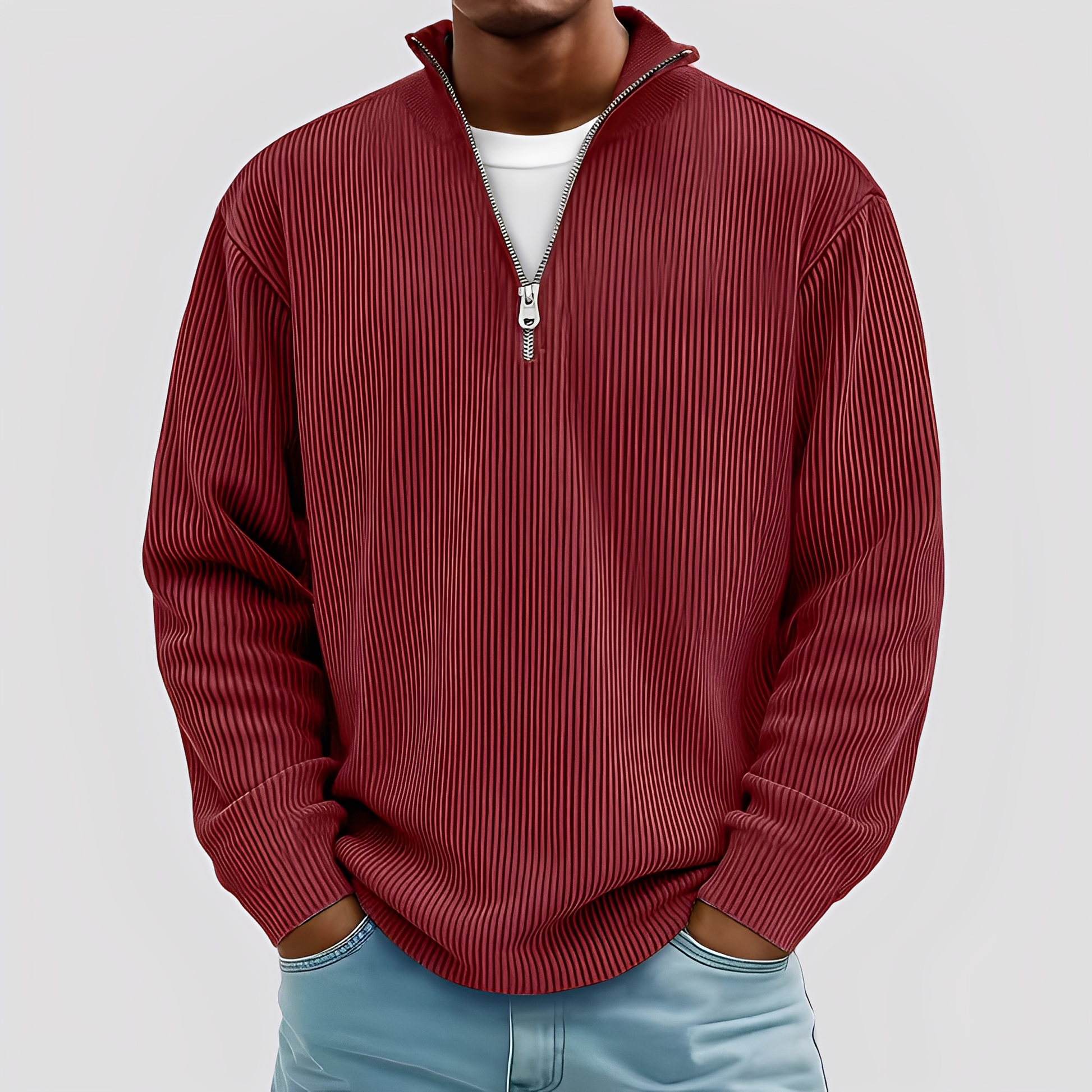 Svetr Henry kombinuje moderní design a vysoké pohodlí. Materiál je jemný a teplý, volný střih umožňuje snadný pohyb a uvolněný vzhled. Perfektní pro běžné nošení, volný čas nebo víkendové aktivity, snadno se kombinuje s jinými kusy oblečení. Nezbytný pro muže, kteří hledají pohodlí a styl.