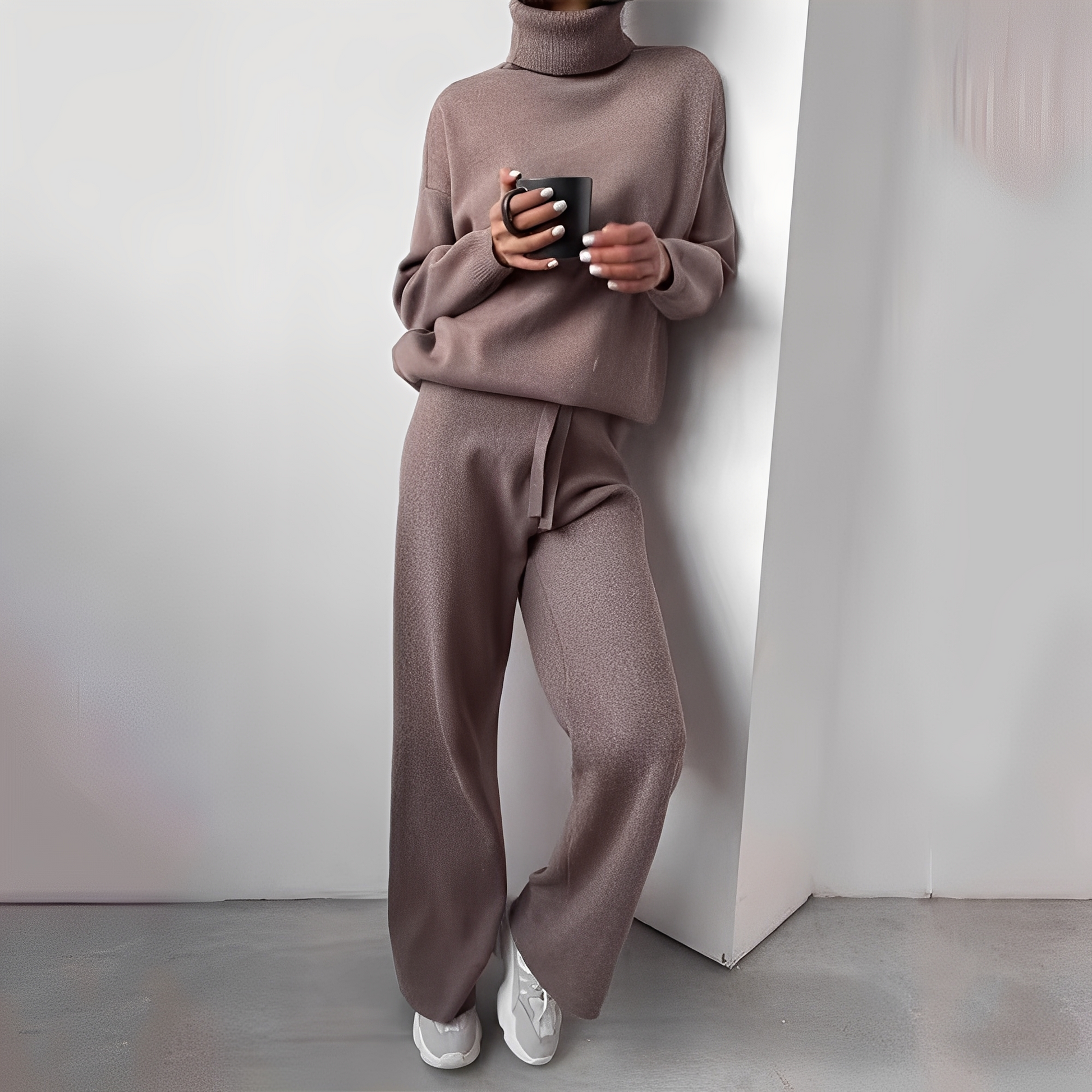 Set „Kimberlee“ slučuje jednoduchost a eleganci do moderního a pohodlného designu. Měkký materiál a jemný vysoký límec nabízejí útulnost a stylovou siluetu. Perfektní pro domácí relaxaci, volnočasové aktivity nebo neformální každodenní nošení – tento set zaručuje upravený a komfortní vzhled.