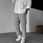 Pozvedněte svůj každodenní styl s těmito prémiovými pánskými kalhotami Mathias s volným střihem. Vyrobeny z měkké a vysoce kvalitní tkaniny, s čistým a nadčasovým střihem, spojují rafinovanou eleganci a funkčnost. Ať už jdete do práce, na neformální výlet nebo na večírek, tyto kalhoty nabízejí pohodlí a styl, které pozvednou jakýkoli outfit. Jejich jemný design a luxusní pocit z nich činí všestranný základ pro každý šatník.