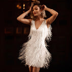 Mégane - Šaty na koktejl s třásněmi a pery pro ženy