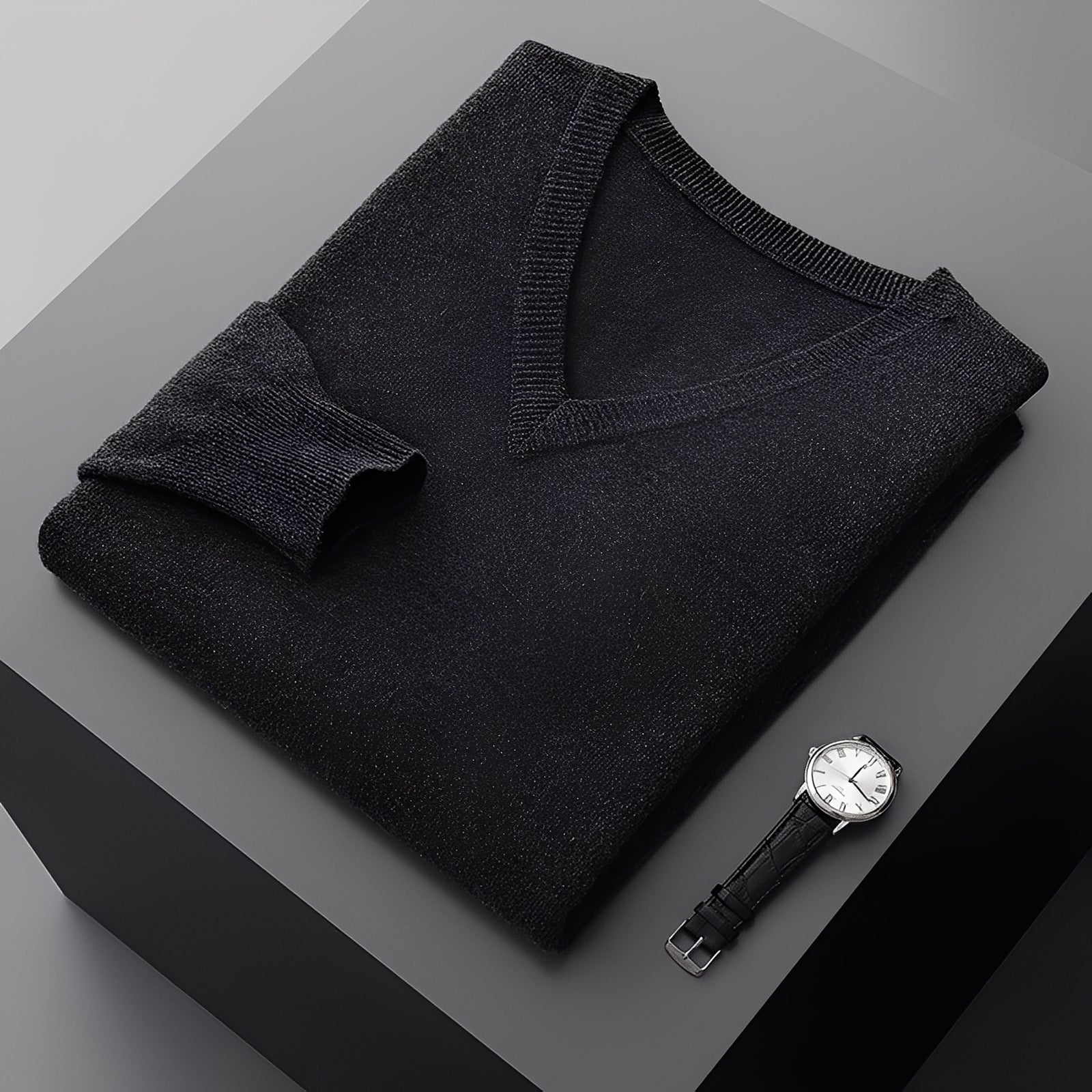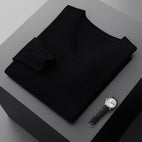 Kašmírový svetr „Myron“ se pyšní jednoduchou elegancí a velmi pohodlným nošením. Vyrobený z jemného kašmíru, poskytuje příjemné teplo bez pocitu těžkosti. Klasický výstřih do V mu dodává moderní a univerzální vzhled – ideální pro práci, volný čas nebo elegantní události.