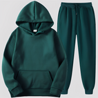 Tento dvoudílný sportovní set je vyroben z jemné látkové směsi, která umožňuje snadný pohyb a pohodlné nošení. Sada obsahuje mikinu s kapucí a ladící tepláky pro jednotný styl. Perfektní pro sport či odpočinek doma, pružný materiál zajišťuje příjemný pocit na kůži. Praktické prvky jako žebrované manžety a nastavitelná kapuce zdůrazňují funkční design.